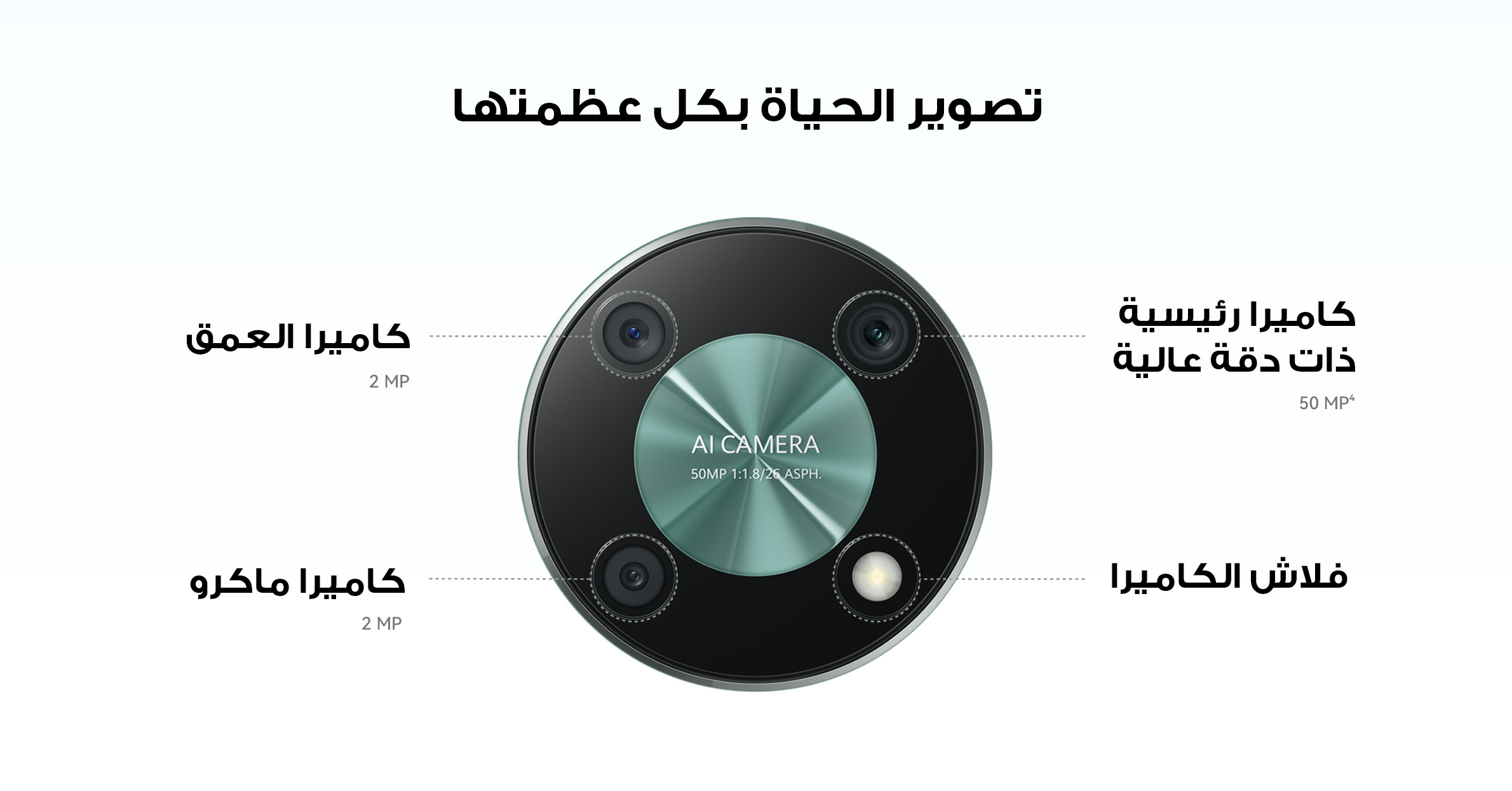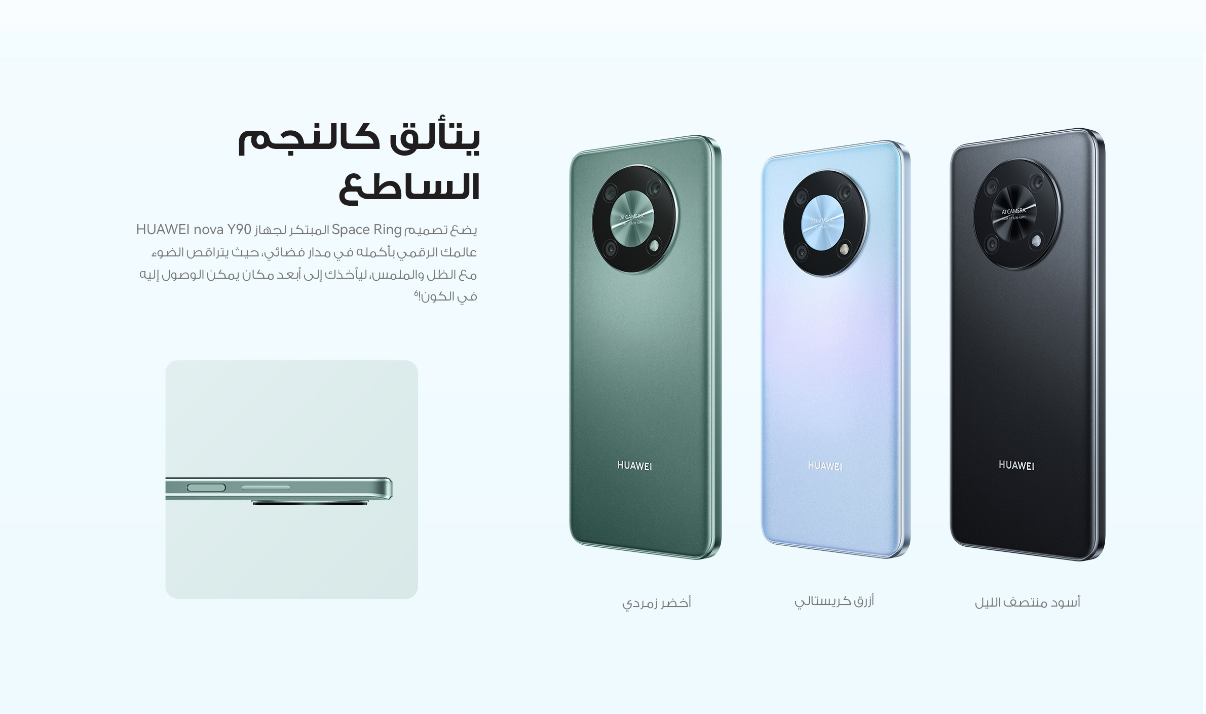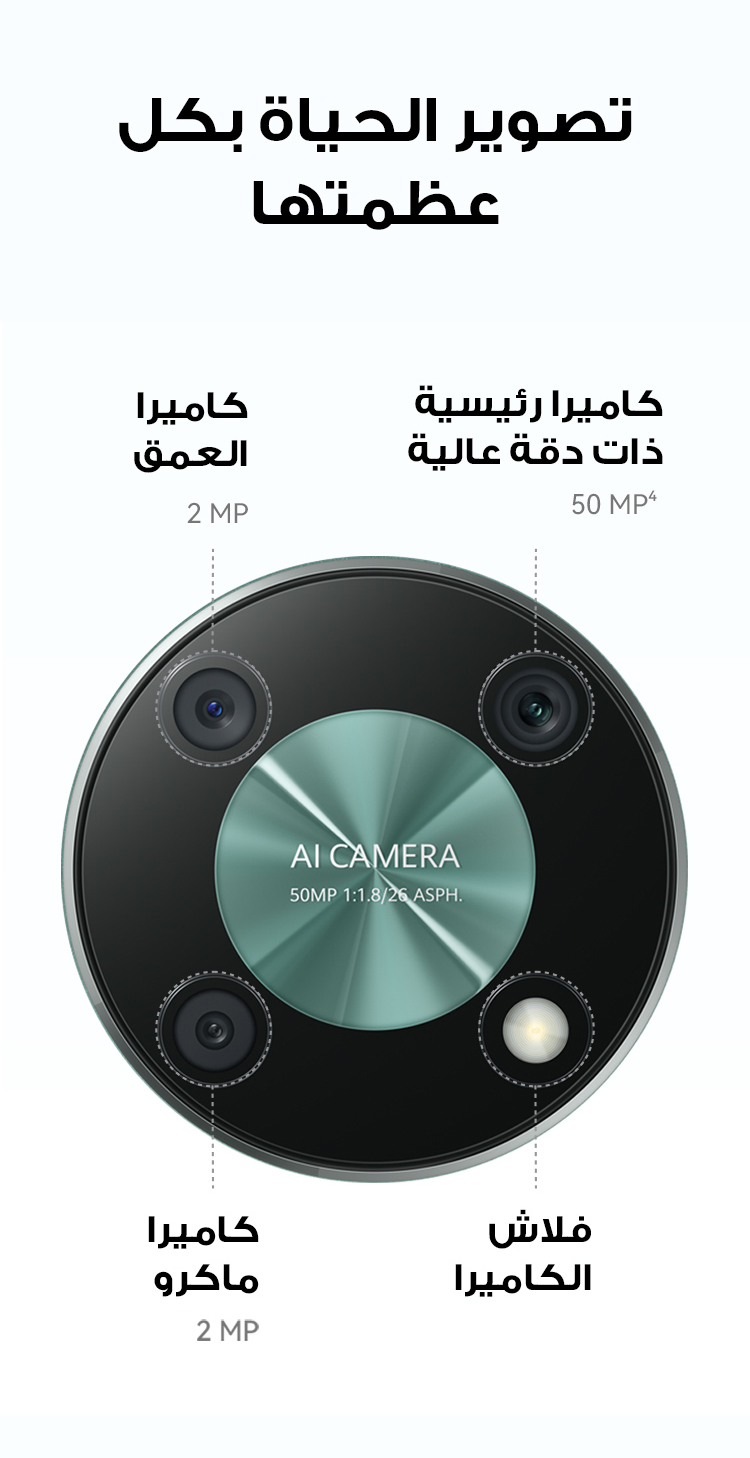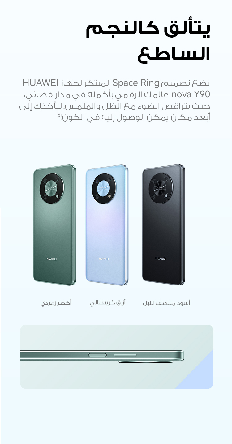 • <p>يحتوي هاتف HUAWEI nova Y90 على نظام كاميرا على شكل حلقة فضائية مع كاميرات خلفية ثلاثية العمق بدقة 2 ميجابكسل وكاميرا رئيسية بدقة 50 ميجابكسل وكاميرا ماكرو بدقة 2 ميجابكسل. ويحتوي أيضًا على كاميرا أمامية بدقة 8 ميجابكسل تعمل مع خوارزميات HUAWEI AI لعرض جمالك الطبيعي في الشاشة الكاملة.</p>