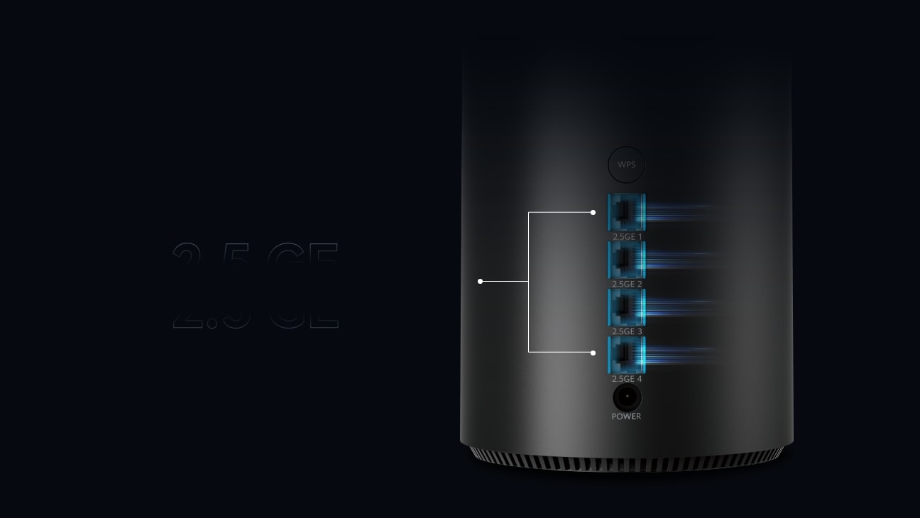 Verfügt über vier 2,5-GE-Anschlüsse zum Anschluss mehrerer Geräte wie PCs und Spielekonsolen. Unterstützt Gigabit+-Internetzugang, Hochgeschwindigkeitsdownloads und effiziente Datenweiterleitung.