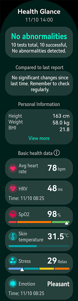 - Функцията Health Glance не е софтуер за медицински изделия. Резултатите са само за лична справка и не трябва да се използват като основа за медицински изследвания, диагностика или лечение.