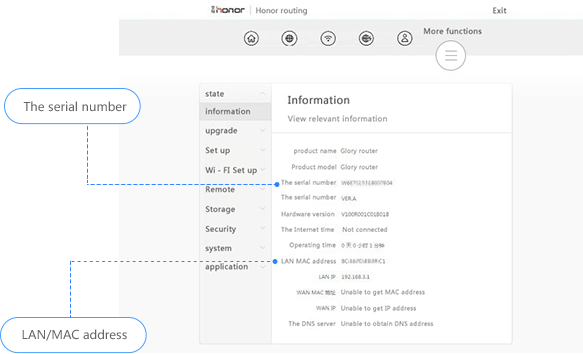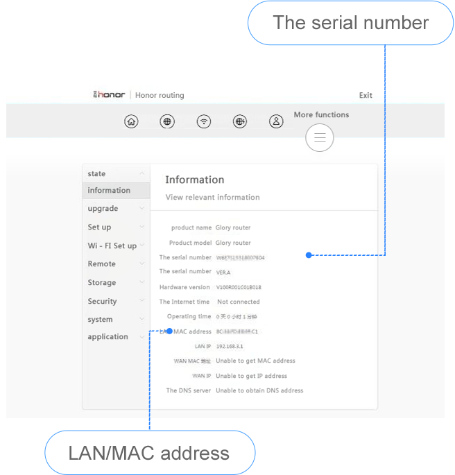 Войдите в приложение Hilink и щелкните по значку шестеренки Параметры в верхнем правом углу домашней страницы -> Устройство -> Информация об устройстве. На этой странице можно посмотреть информацию о маршрутизаторе, включая S/N.