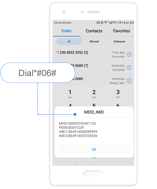 При включенном устройстве наберите *#06# для запроса.