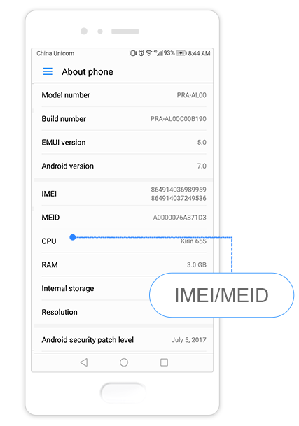 При включенном устройстве войдите в Параметры -> Сведения о телефоне -> Текущий статус для запроса.