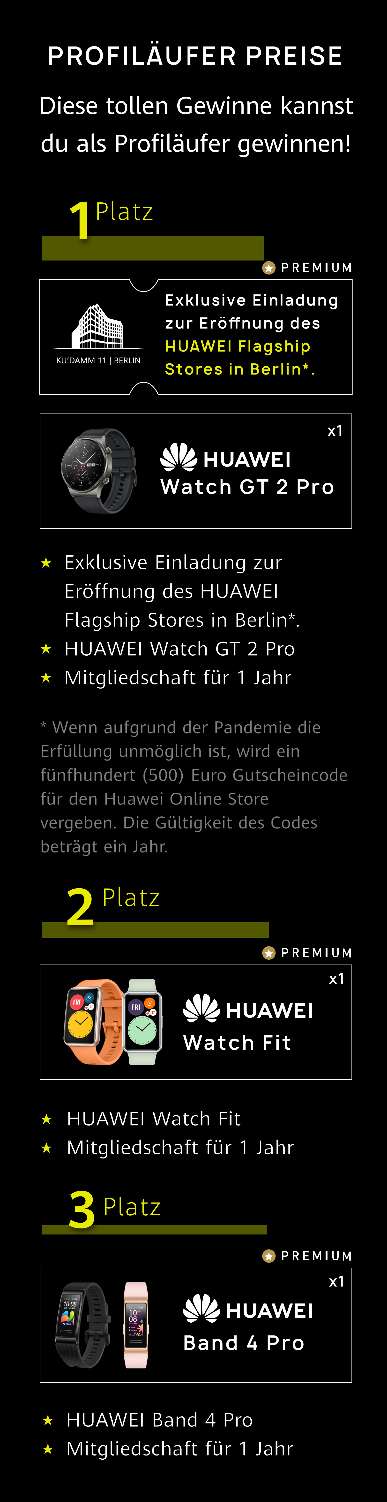+Bei der ‚Hobbyläufer Gruppe‘ wirst du von den Administratoren der HUAWEI Community kontaktiert und bekommst einen Code, den du im HUAWEI online Store einlösen kannst. Alles Weitere bekommst du per Post zugeschickt.