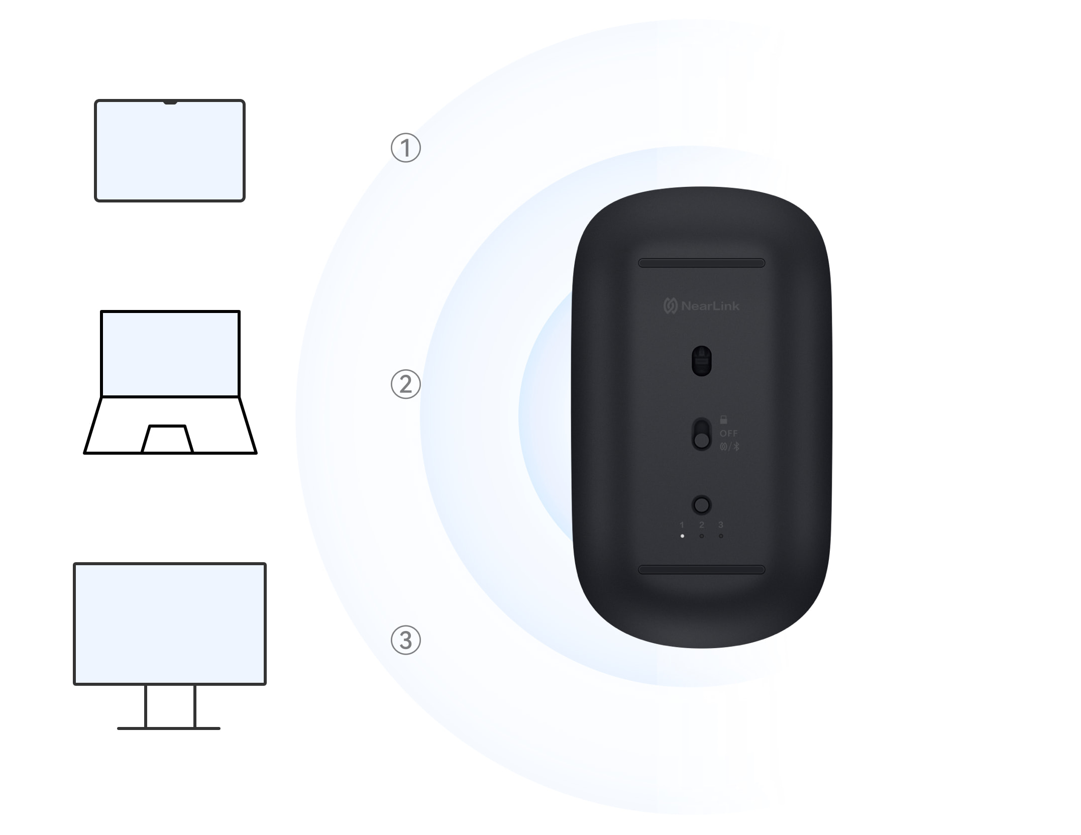 Supported by NearLink,1 HUAWEI Wireless Mouse NearLink achieves intuitive pairing and responsive control with PCs and tablets. The use of AFH technique ramps up its anti-interference capacity by a whopping 400%.2 No worries about lags or drop-offs in complex environment.