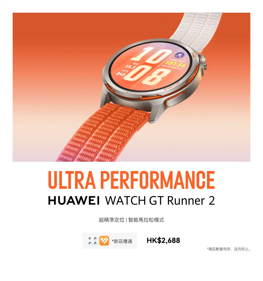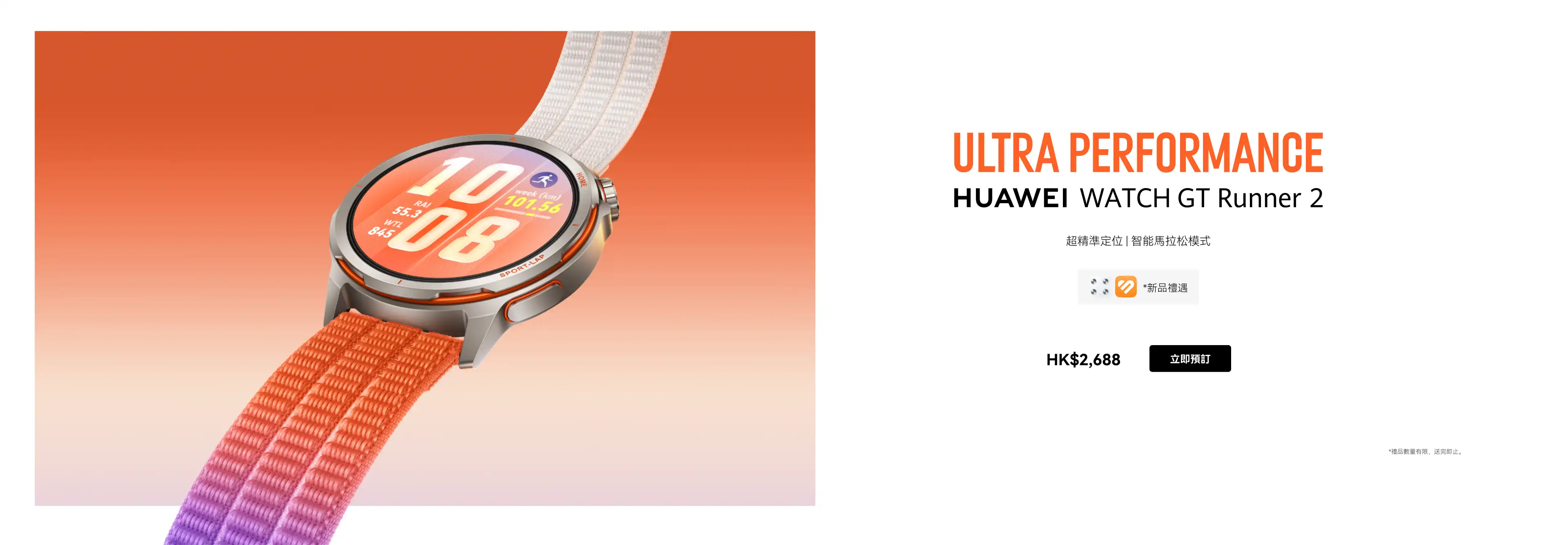 帶著目標奔跑。 HUAWEI WATCH GT Runner 2 是跑者的好夥伴,支援熱身和放鬆伸展運動提示,以及精確的 GPS 追蹤。
