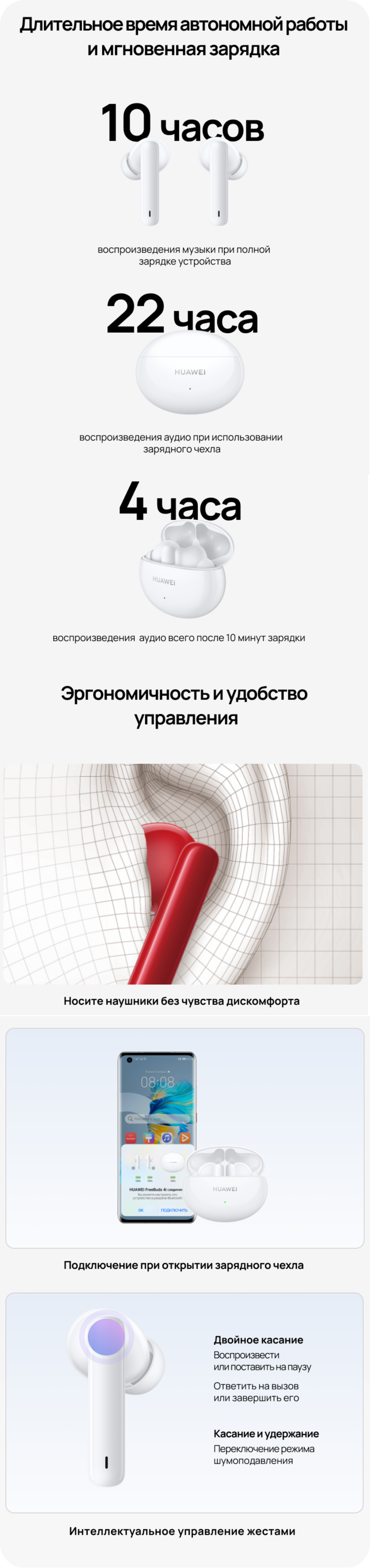 Поддерживают ли HUAWEI FreeBuds 4i управление жестами?
