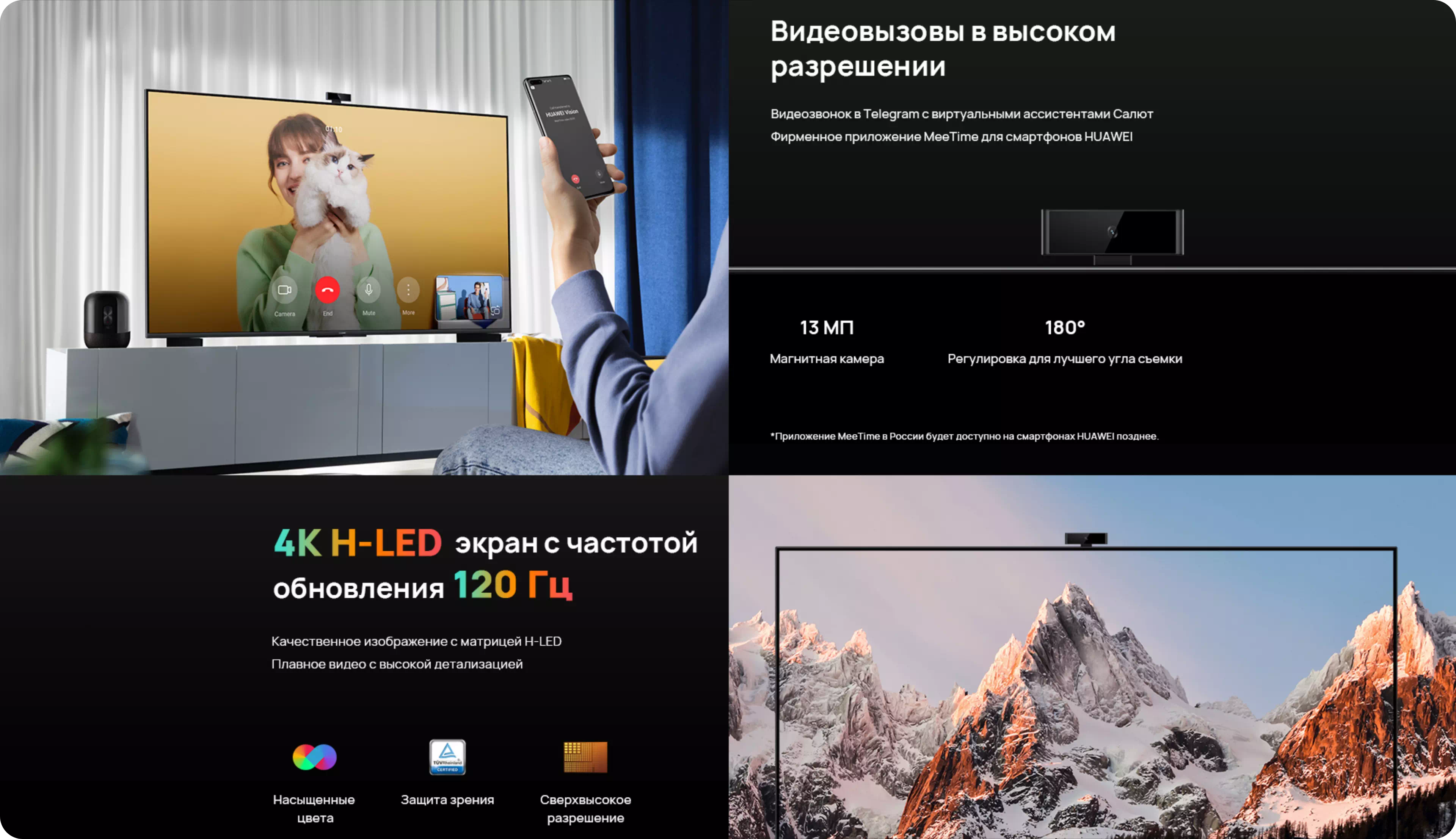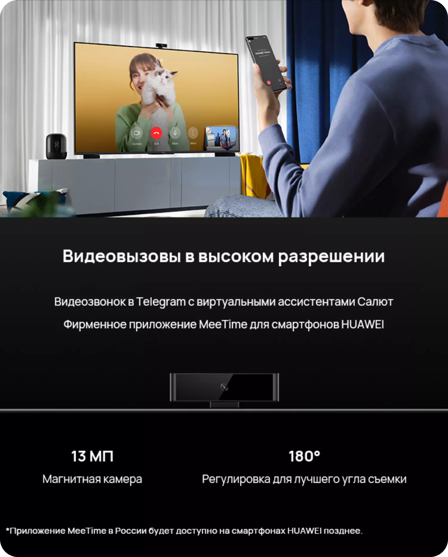 <p>Данная модель поддерживает видеовызовы, переключение видеовызовов, домашняя камера, проекция OneHop, Mirror Control, Huawei Share, распределенное управление во время игр, AI Voice, режим динамиков с поддержкой искусственного интеллекта. </p>